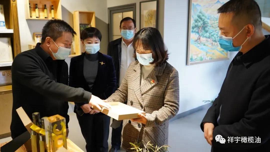 在參觀過程中王局長詢問了油橄欖的出油率、生長環(huán)境、管護(hù)投入、畝產(chǎn)量、農(nóng)戶增收以及通過電商渠道的銷售等情況,